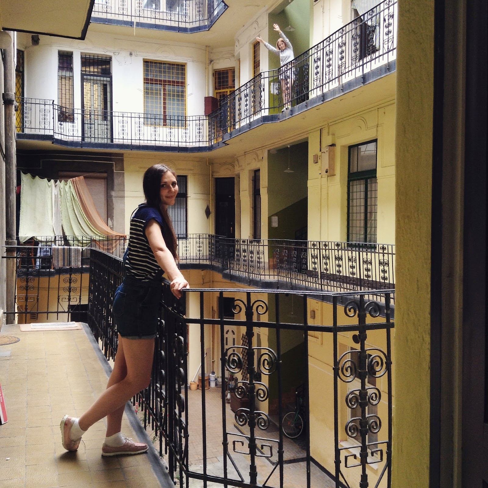 10-15 минут до метро и шумящий 24/7 квартал, полный разноцветных заведений (напротив входной двери Ramenka, а дальше по улице руин-бар Szimpla).